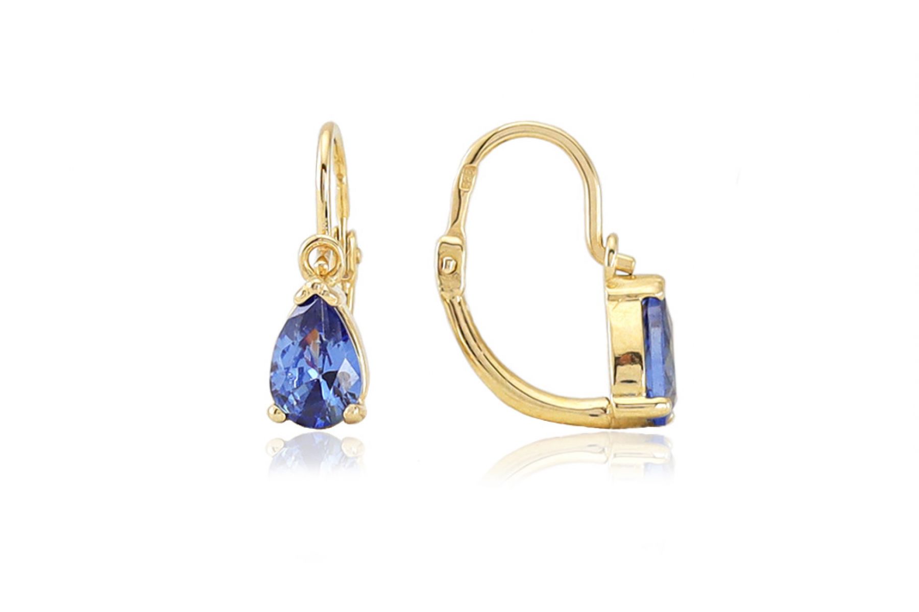 Amennyire aprócska, annyira szép és elegáns ez a csepp alakú szikrázó kék cirkónia kővel díszített arany elölkapcsos fülbevaló.