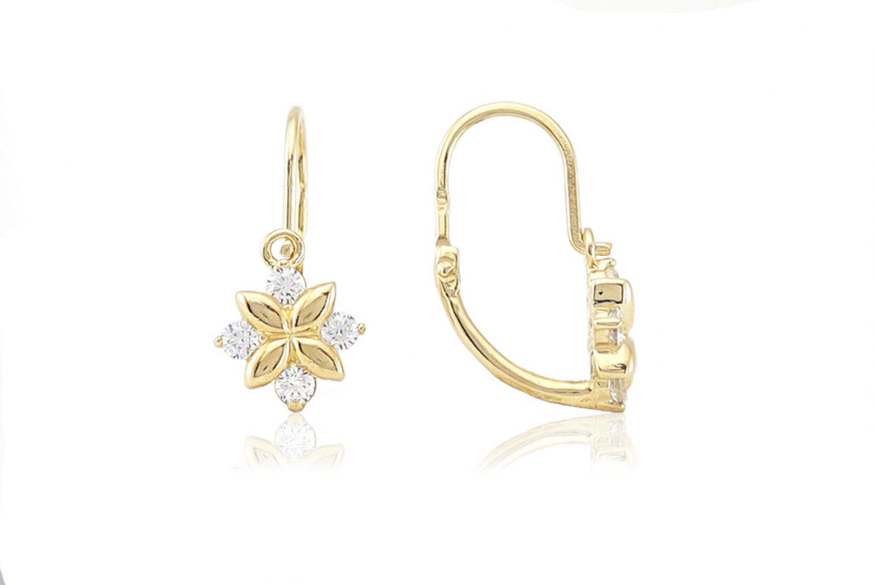 Arany baba fülbevaló elölkapcsos négyköves fehér