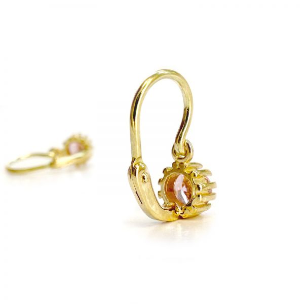 Arany baba fülbevaló rózsaszín kővel - 14K előlkapcsos klasszikus fazon