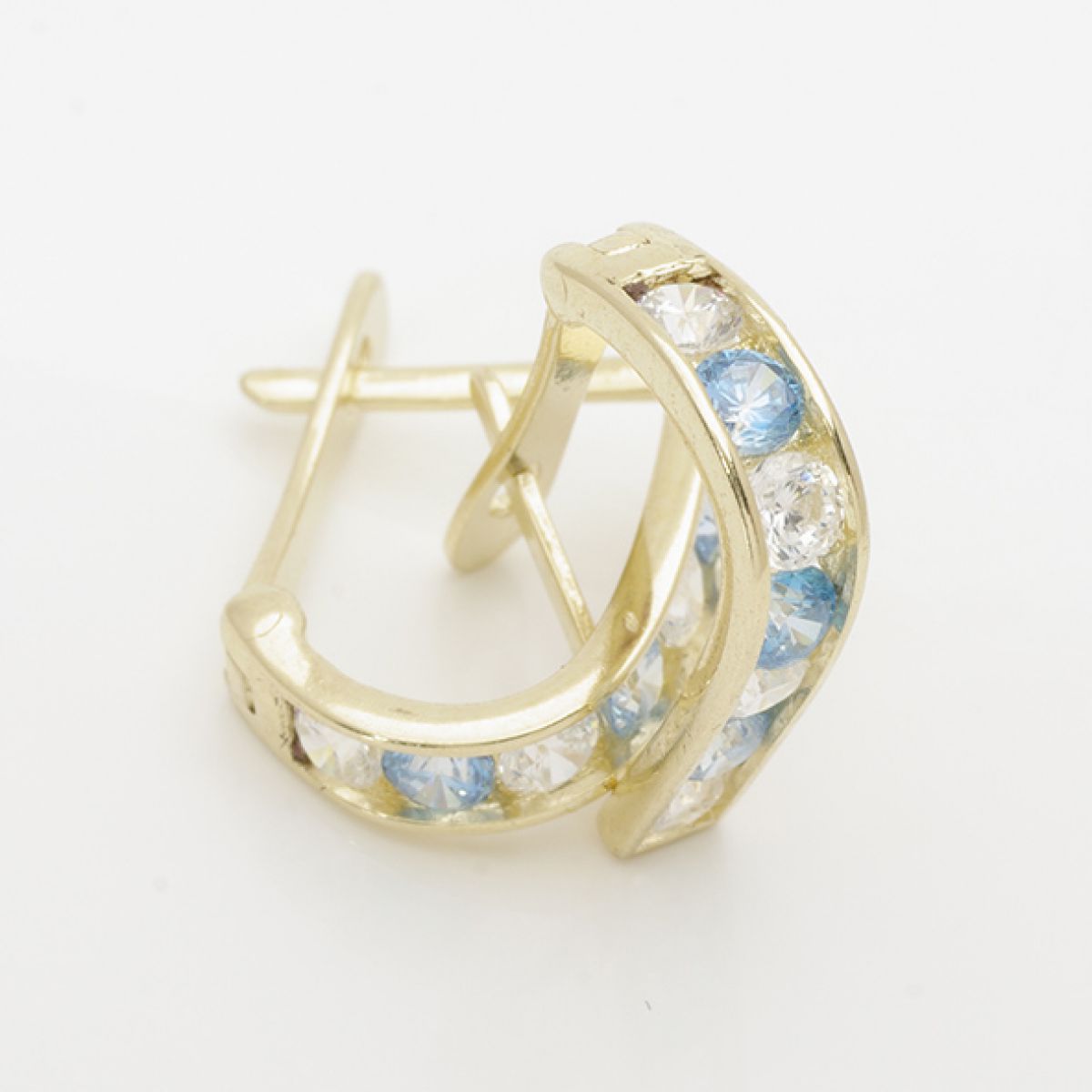 Arany bébi és gyermek fülbevaló 9mm vkék fehér köves