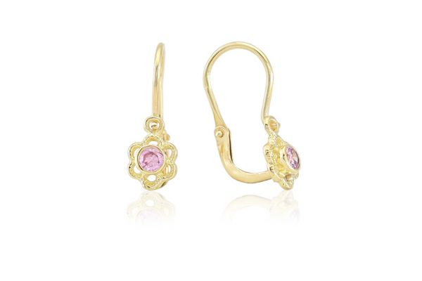 Nagyon cuki ez a rózsaszín cirkónia kővel díszített arany gyermek fülbevaló.