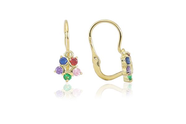 Arany gyermek fülbevaló elölkapcsos csillagvirág színes kövekkel