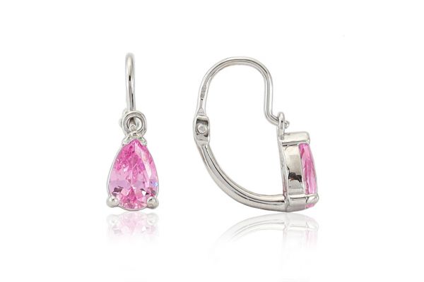 Amennyire aprócska, annyira szép és elegáns ez a csepp alakú szikrázó rózsaszín cirkónia kővel díszített fehér arany elölkapcsos fülbevaló.