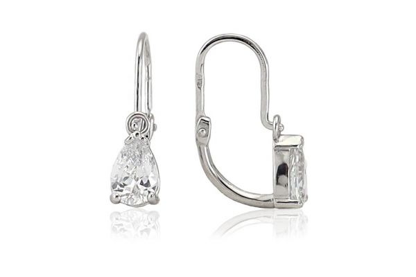 Amennyire aprócska, annyira szép és elegáns ez a csepp alakú szikrázó fehér cirkónia kővel díszített fehér arany elölkapcsos fülbevaló.