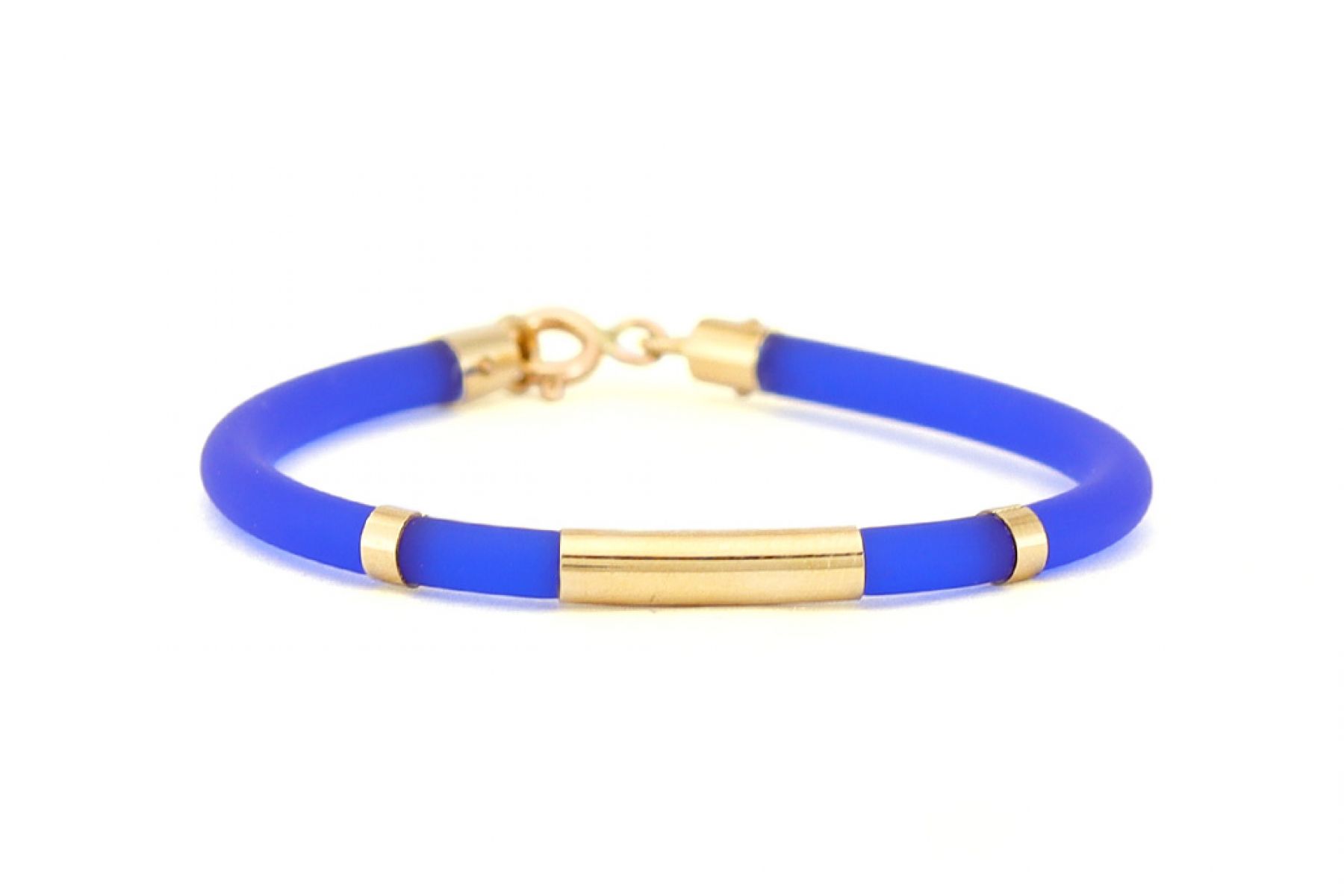 Ez a bájos, egyszerre vidám és stílusos baba karkötő sötétkék kaucsukból és 14 karátos aranyból készült. Tökéletes választás lehet szülinapi ajándéknak, bármilyen különleges alkalom megünneplésére, megemlékezésére.