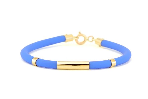 Ez a bájos, egyszerre vidám és stílusos baba karkötő világoskék kaucsukból és 14 karátos aranyból készült. Tökéletes választás lehet szülinapi ajándéknak, bármilyen különleges alkalom megünneplésére, megemlékezésére.