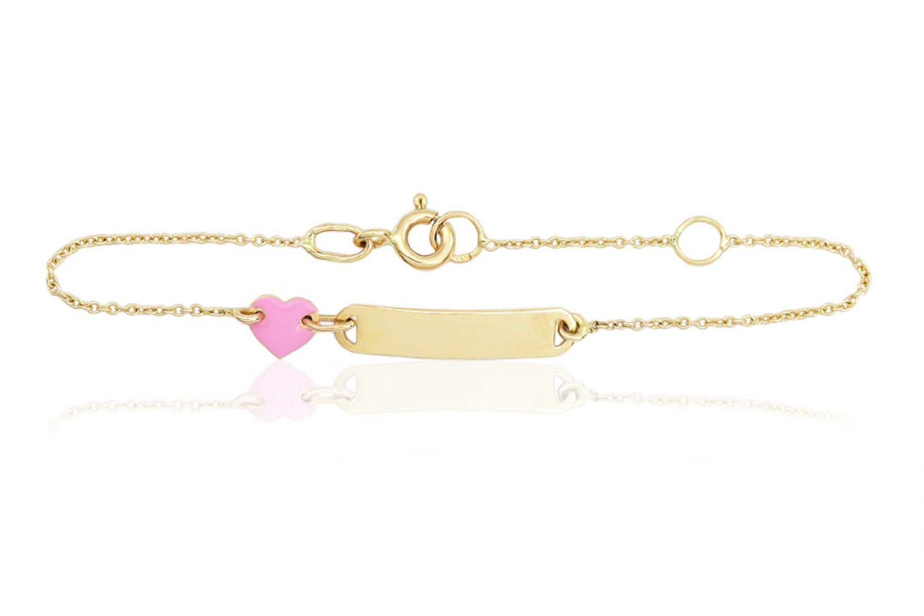 A karkötőt egy apró rózsaszín arany szív is díszíti, így téve még bájosabbá viselőjét.