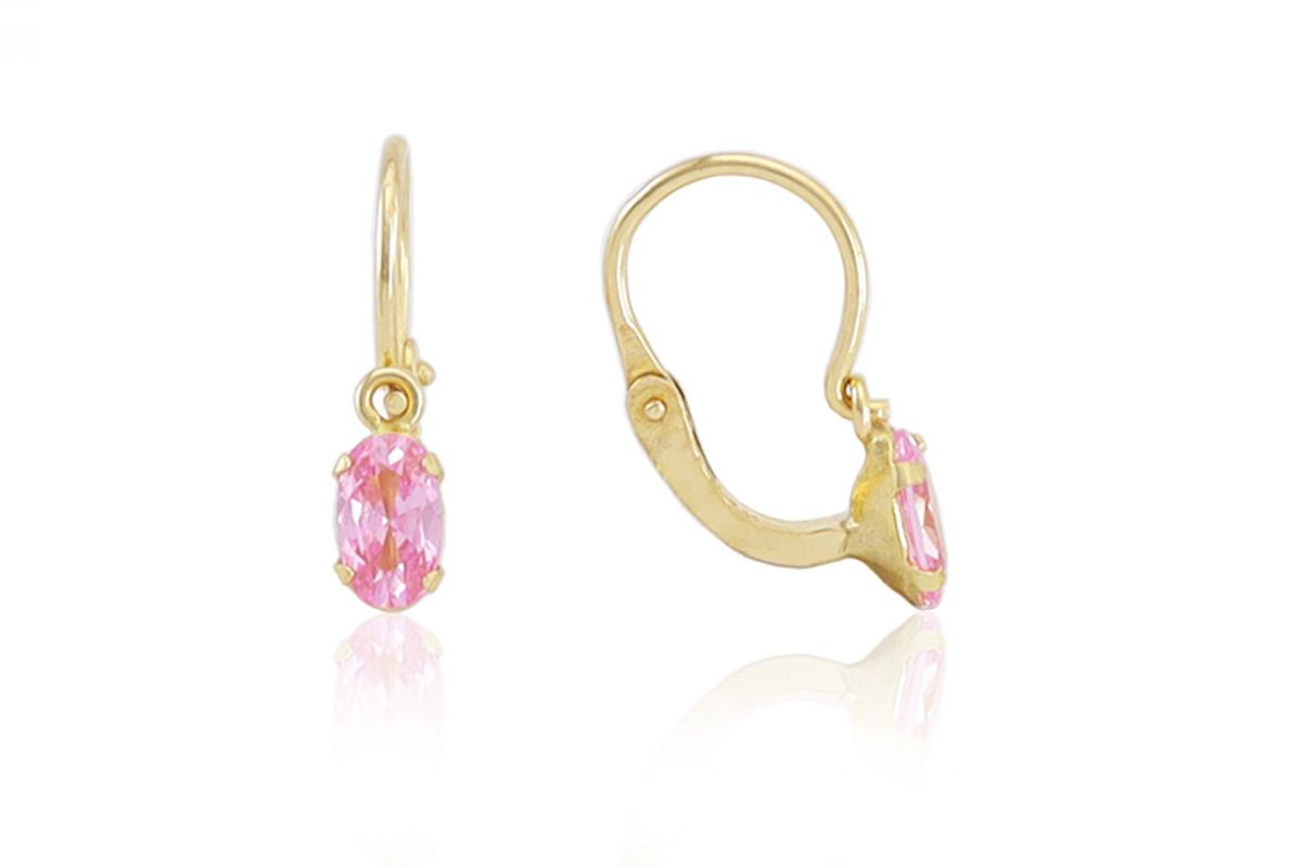 Arany baba fülbevaló elölkapcsos elegáns foglalt ovális rózsaszín kővel
