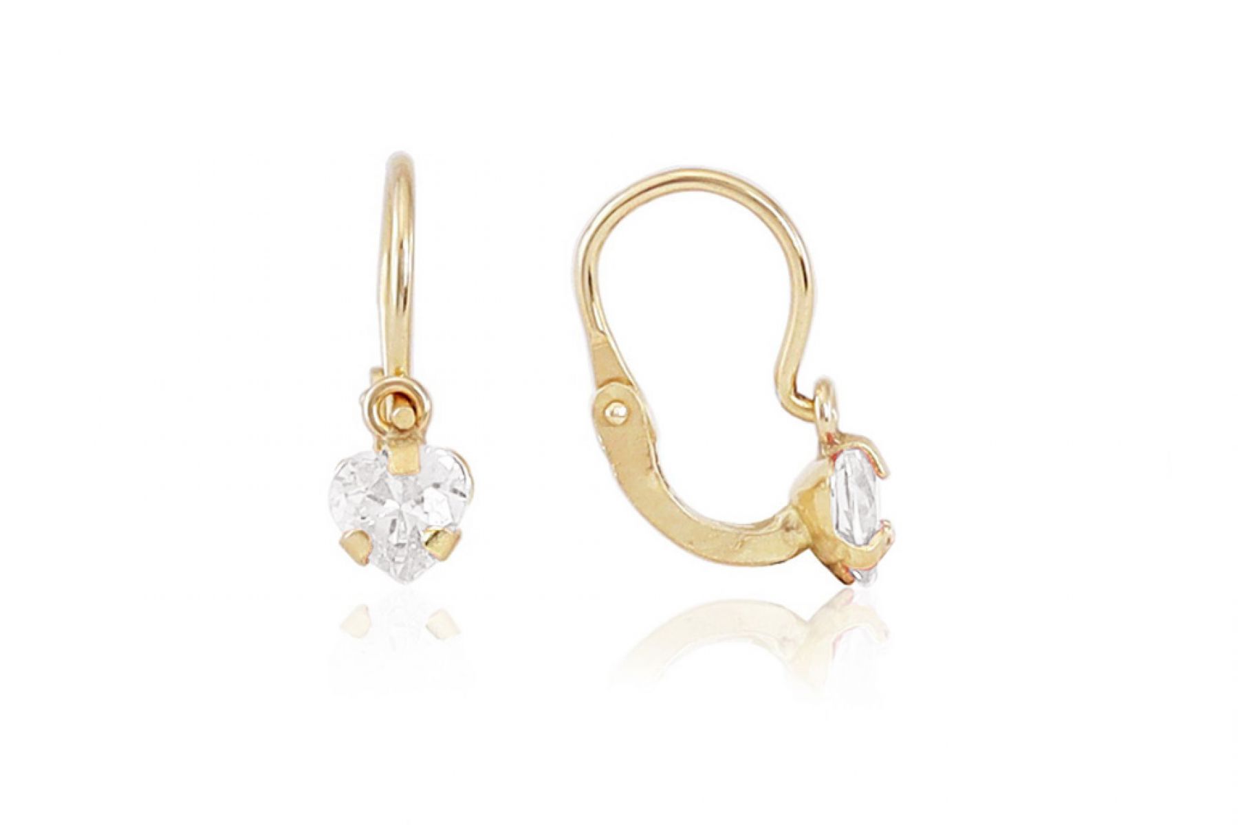 Arany baba fülbevaló elölkapcsos foglaltköves szívecske fehér kővel
