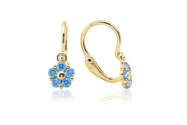 Amennyire aprócska, annyira szép és elegáns ez a szikrázó kék cirkónia kővel díszített arany viriágmintás fülbevaló.