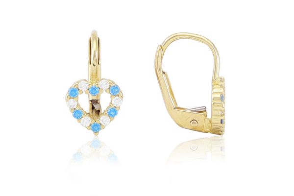 Arany baba fülbevaló patentzáras szívecske világoskék és fehér kövekkel