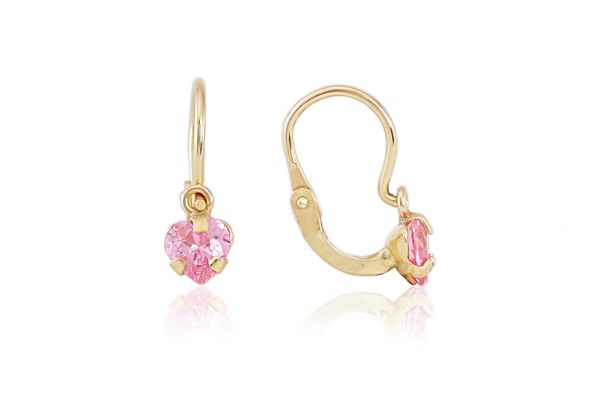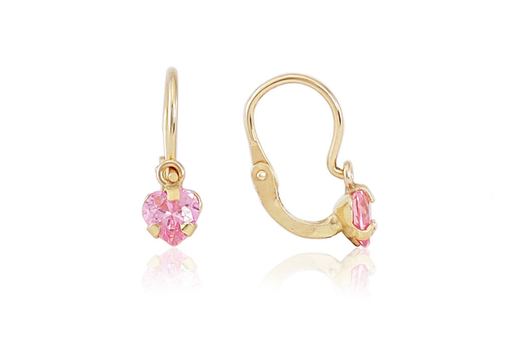 Arany baba fülbevaló elölkapcsos foglaltköves szívecske rózsaszín