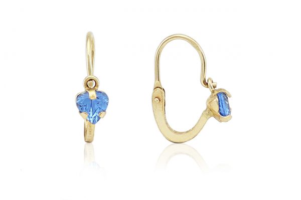Arany gyermek fülbevaló elölkapcsos foglaltköves szívecske kék kővel
