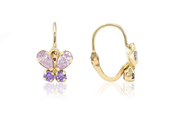 Meg vagyunk győződve arról, hogy nincsen a Föld kerekén olyan kislány, akinek ne dobogtatná meg a szívét ez a 14 karátos aranyból készült, lila cirkónia kövekkel díszitett pillangós fülbevaló.