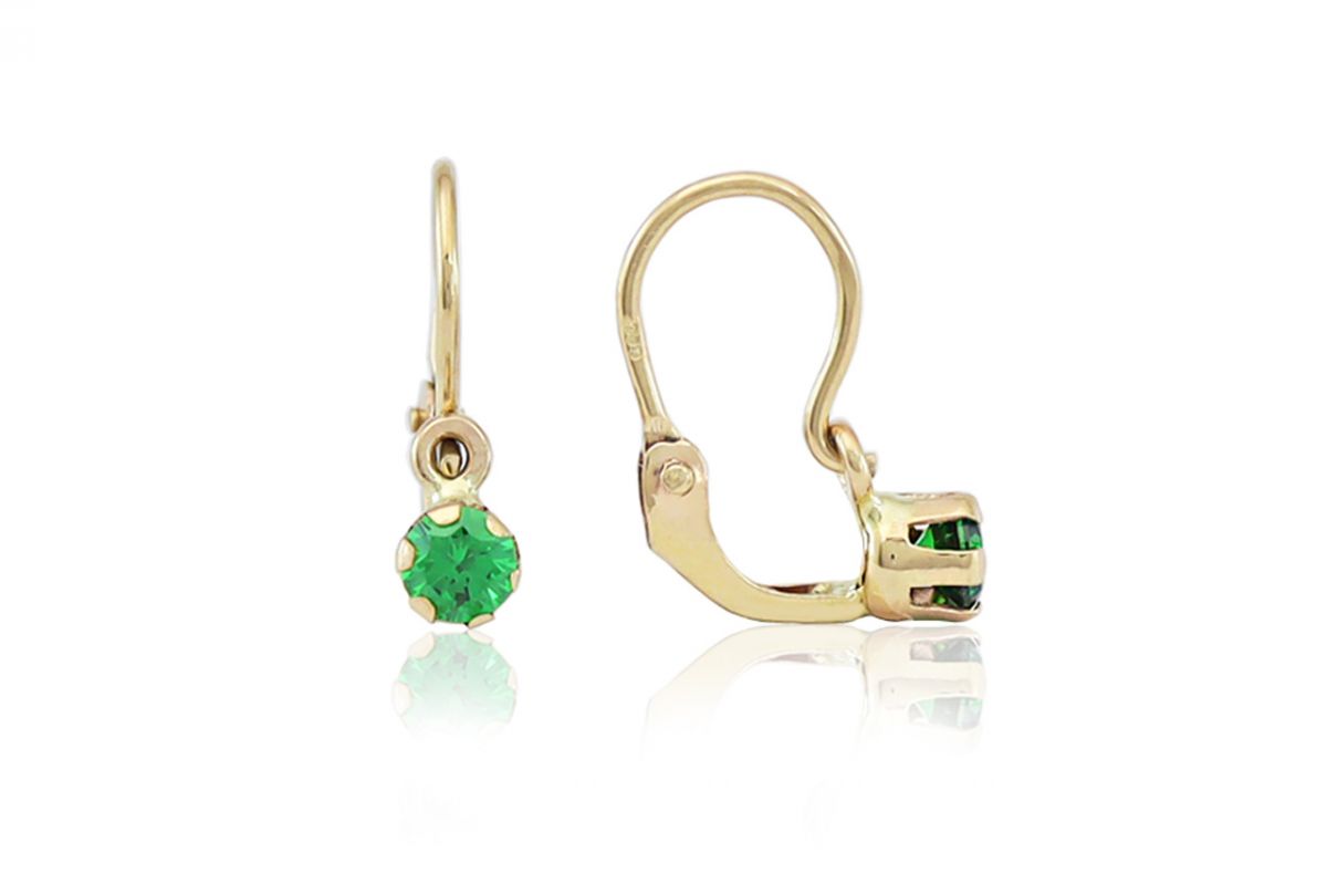 Arany gyermek fülbevaló elölkapcsos szoliter zöld kővel