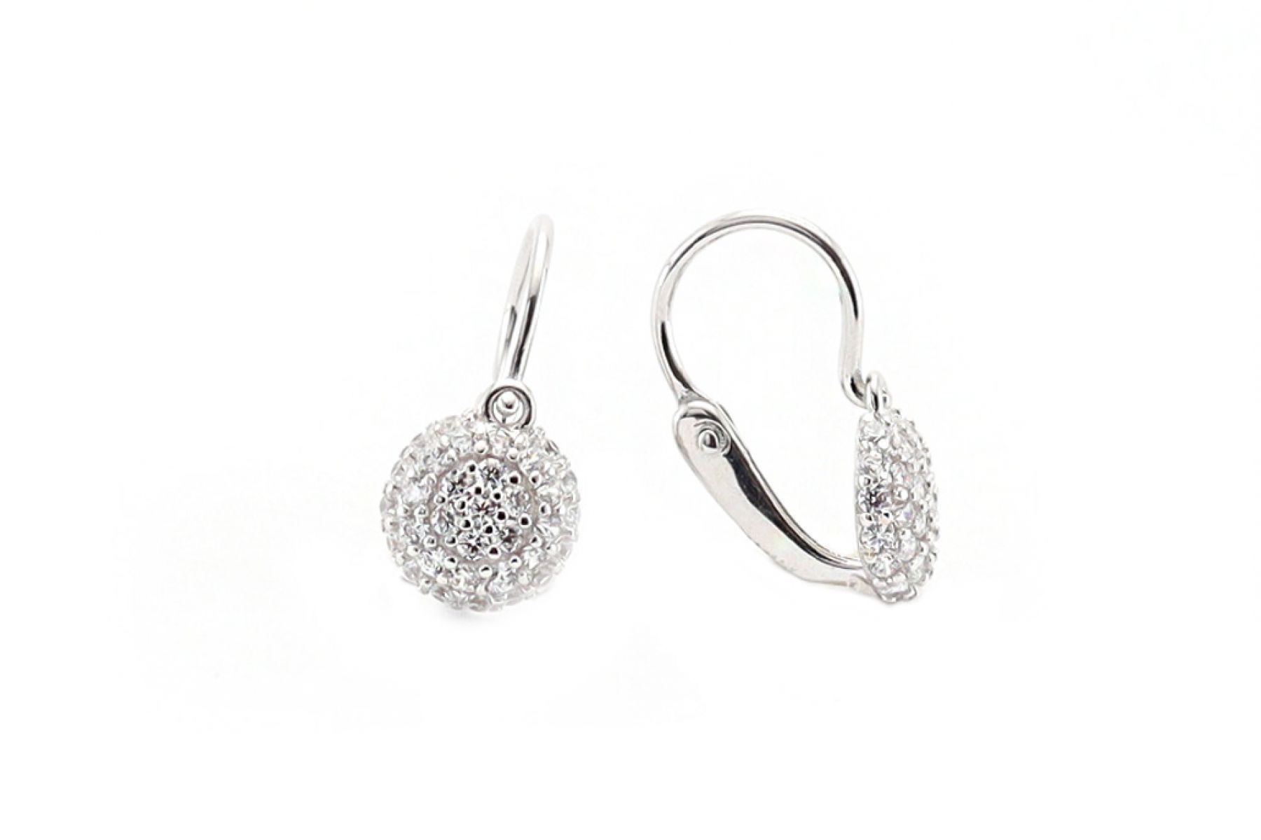Amennyire aprócska, annyira szép és elegáns ez a szikrázó fehér cirkónia kövecskékkel díszített fehér arany fülbevaló.