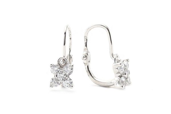 Amennyire aprócska, annyira szép és elegáns ez a szikrázó fehér cirkónia kővel díszített fehér arany viriágmintás fülbevaló.