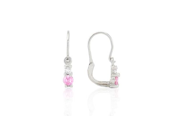 Fehér arany gyermek fülbevaló elölkapcsos kétköves szoliter rózsaszín fehér