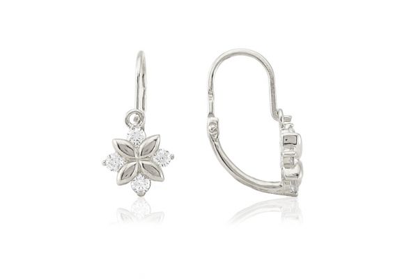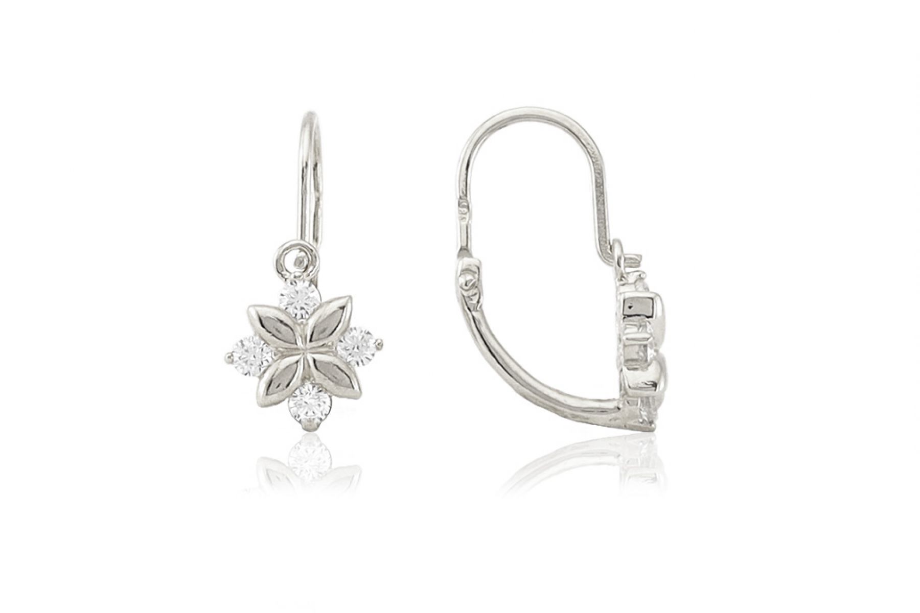 Fehér arany gyermek fülbevaló elölkapcsos négyköves fehér