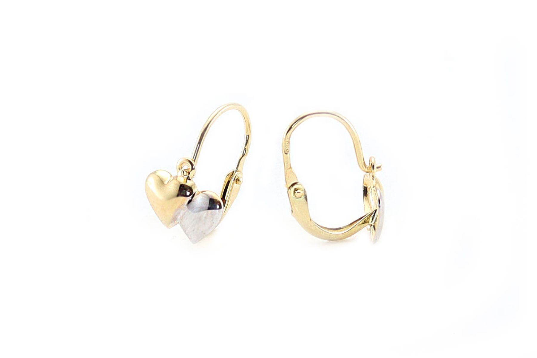 Fehérarany és arany szíves sárga arany gyermek fülbevaló