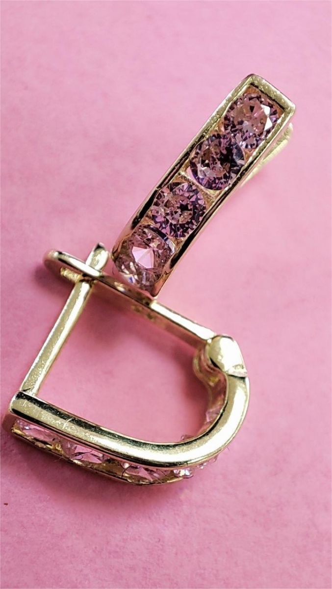 Franciakapcsos arany baba fülbevaló rózsaszín kővel 6mm