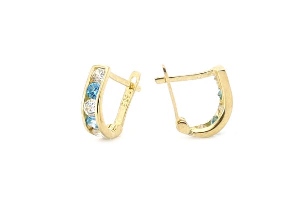 Már a legapróbbak is biztonságosan hordhatják ezt a szépséges, kék-fehér köves arany baba fülbevalót.