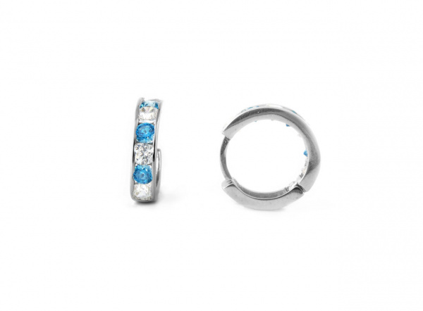 Kék és fehér köves kör alakú fehérarany baba fülbevaló 6mm