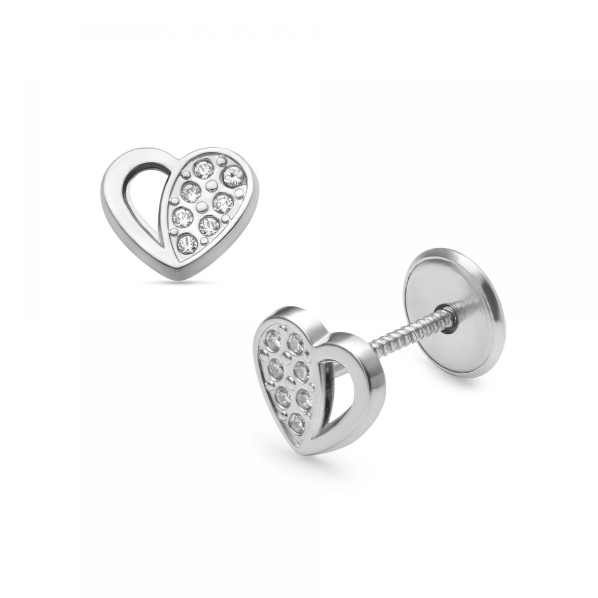 LISA fehér arany baba és gyermek fülbevaló csavaros félig köves áttört szívecske