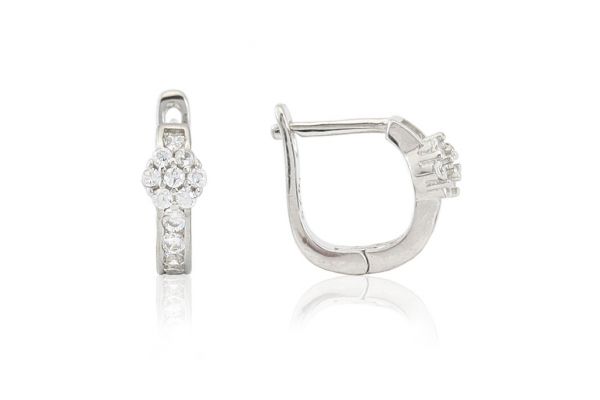 Fehér köves, franciakapcsos virágmintás ezüst baba fülbevaló