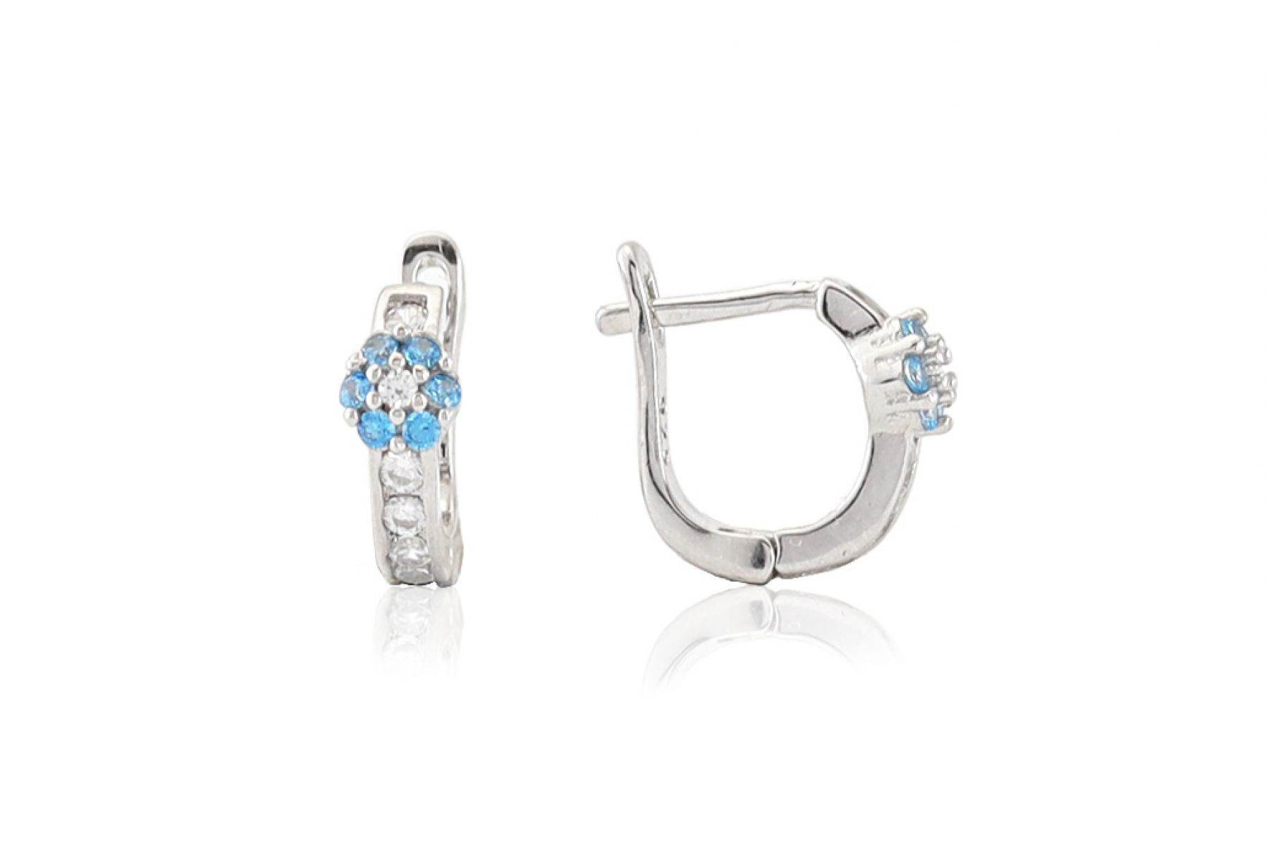 Világoskék köves, franciakapcsos virágmintás ezüst baba fülbevaló