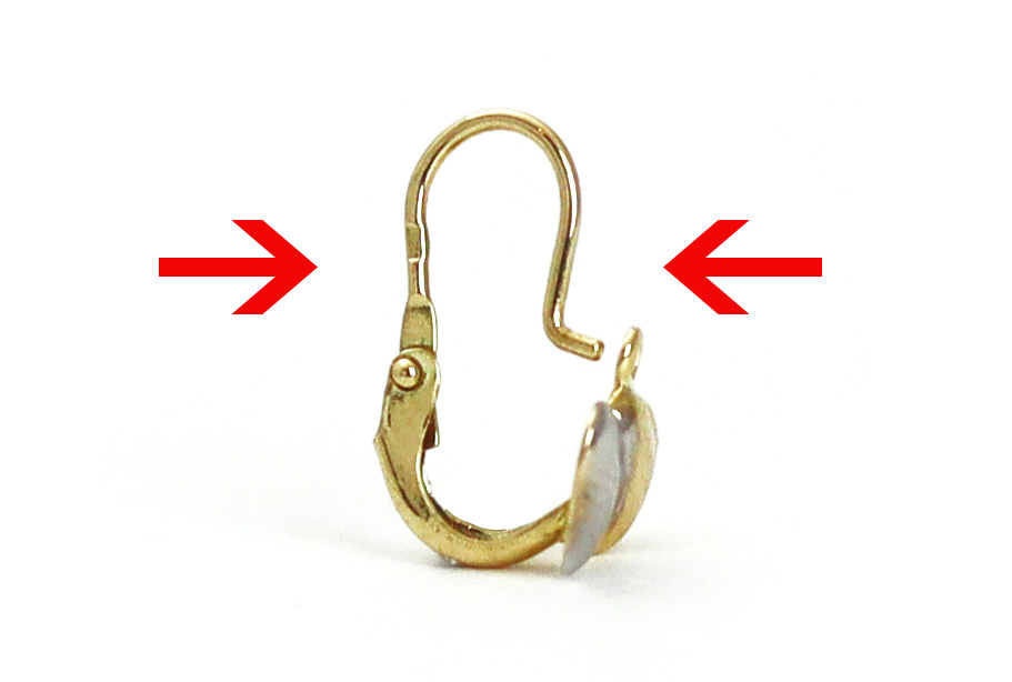 A fülbevaló alsó részét és az oldalát jól tartva a felső szár részt egyszerűen kihajlítjuk.