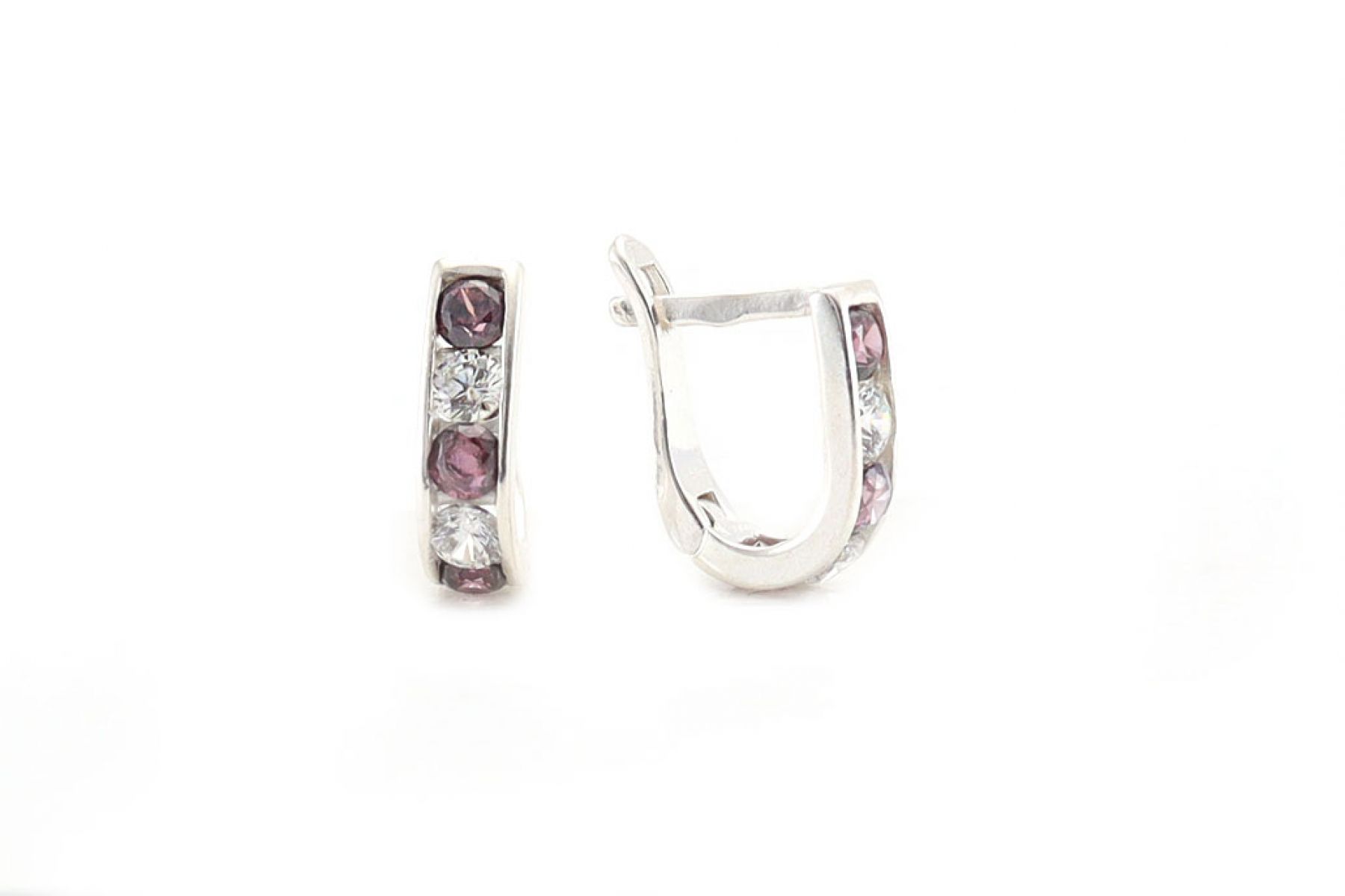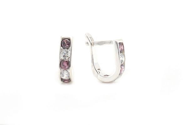 Ezüst fülbevaló franciazáras rodolit-fehér kövekkel