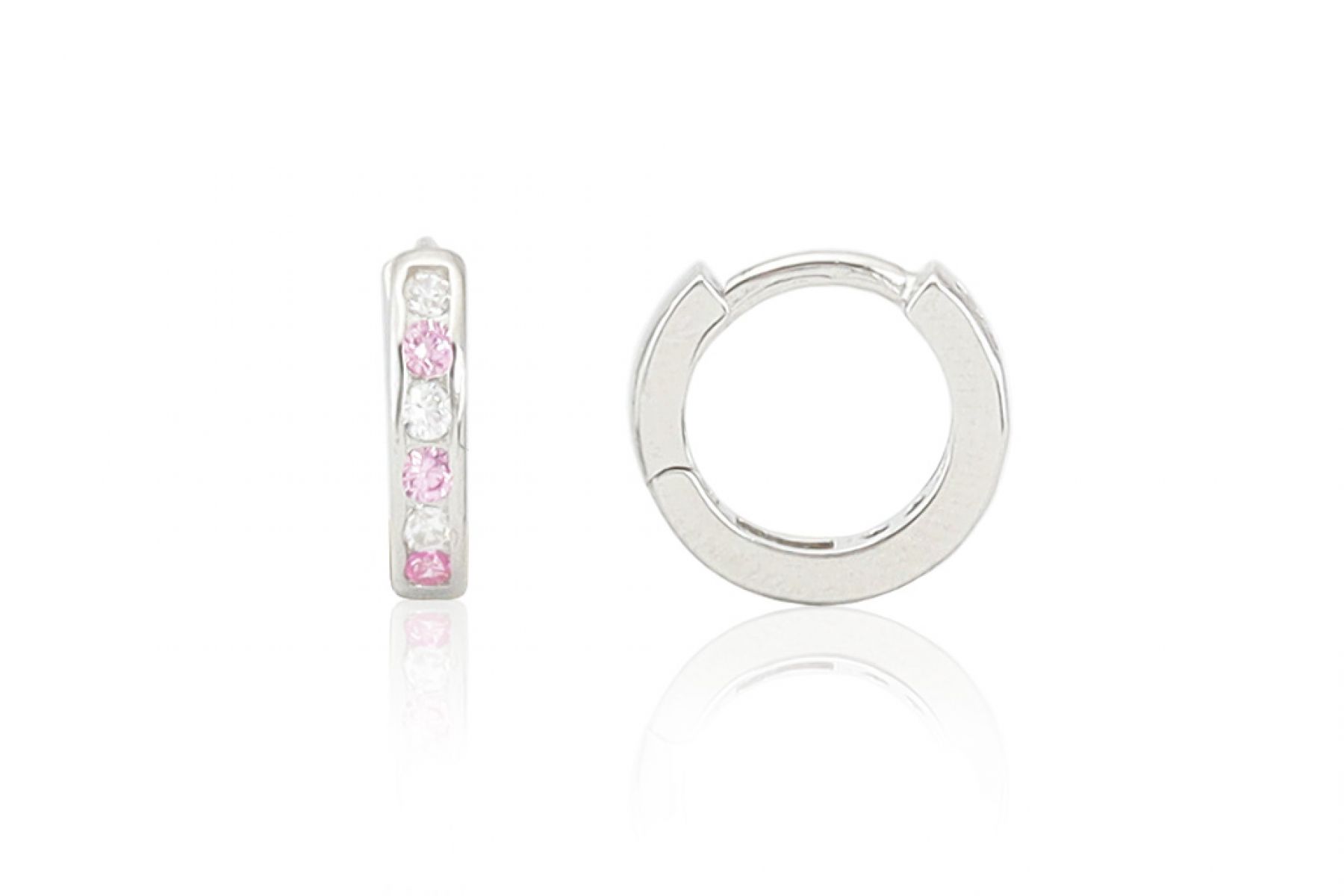 Ezüst gyermek fülbevaló bepattintós karika rózsaszín és fehér kövekkel ródiumbevonatos 8mm