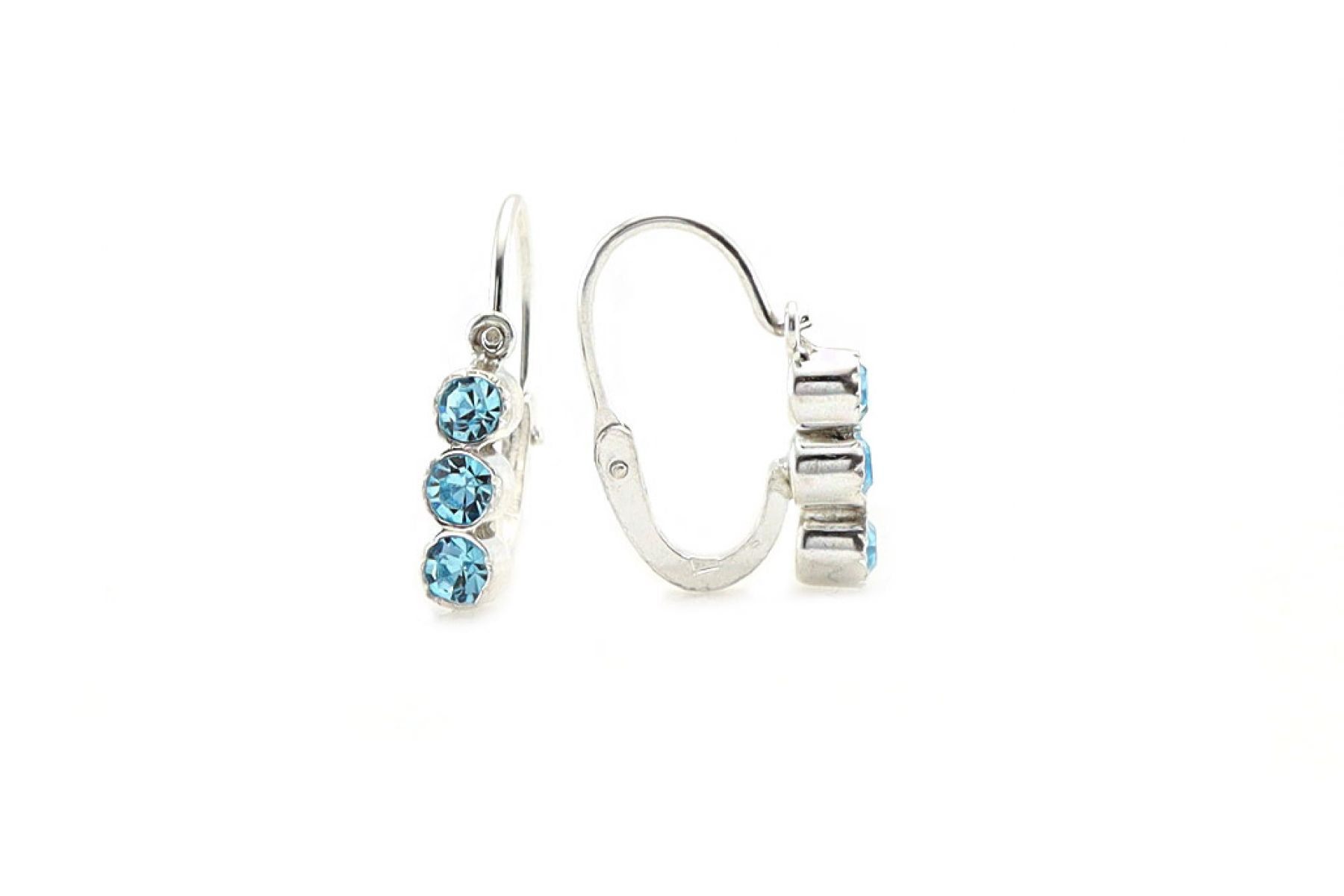 Ezüst gyermek fülbevaló elölkapcsos 3 kék kővel