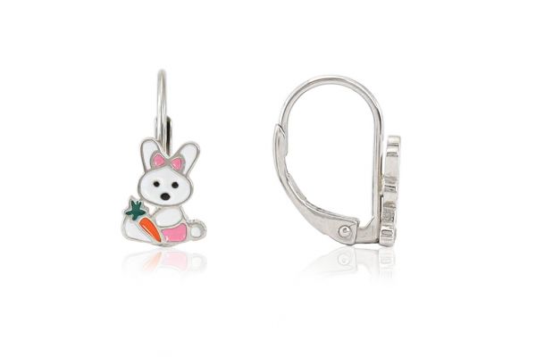 Ezüst gyermek fülbevaló patentzáras nyuszi répával ródiumbevonatos