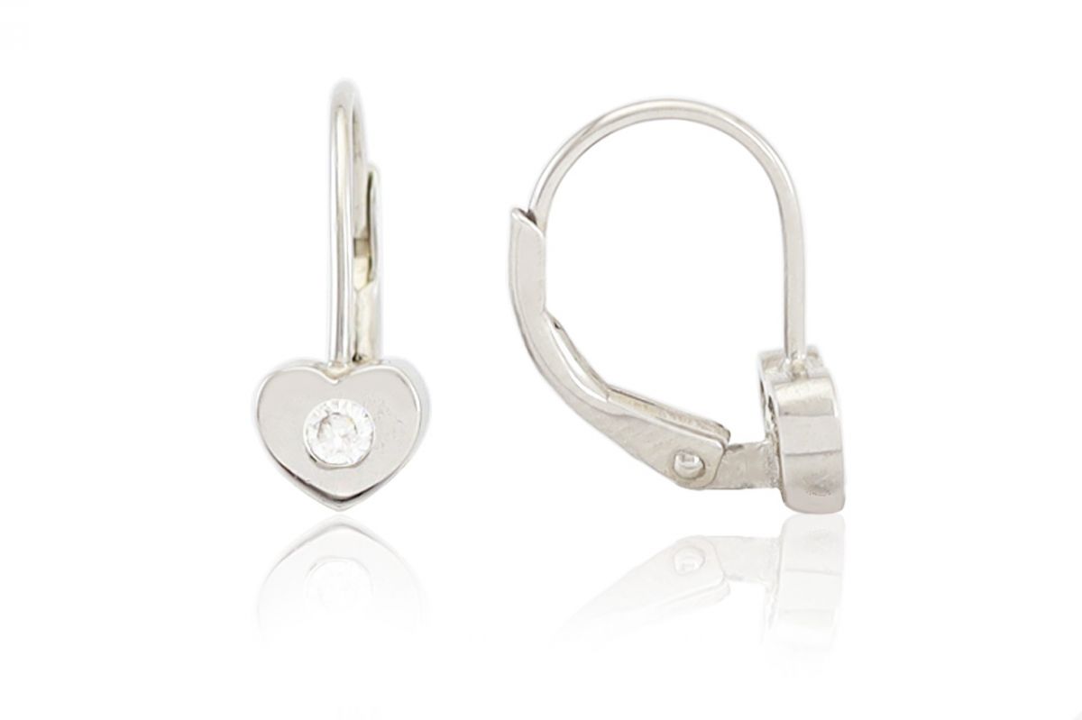 Egyik legszebb szívecskés, fehér köves ezüst gyermek fülbevalónk ez a szív alakú fehér kővel díszített darab.