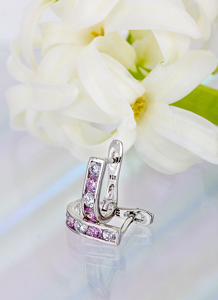 Ezüst gyermek fülbevaló rózsaszín fehér köves francia záras