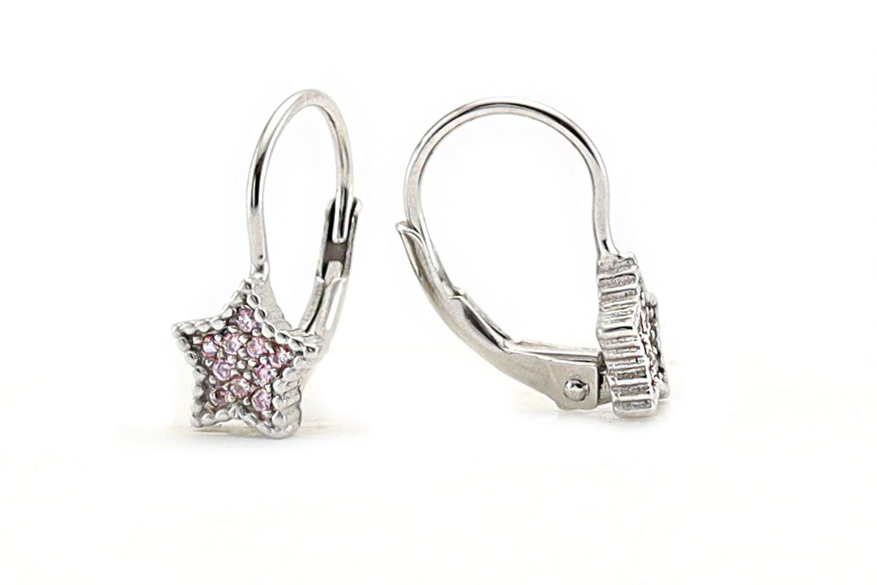 Egyik legszebb csillag mints, rózsaszín köves ezüst gyermek fülbevalónk ez az apró cirkóniákkal díszített darab.