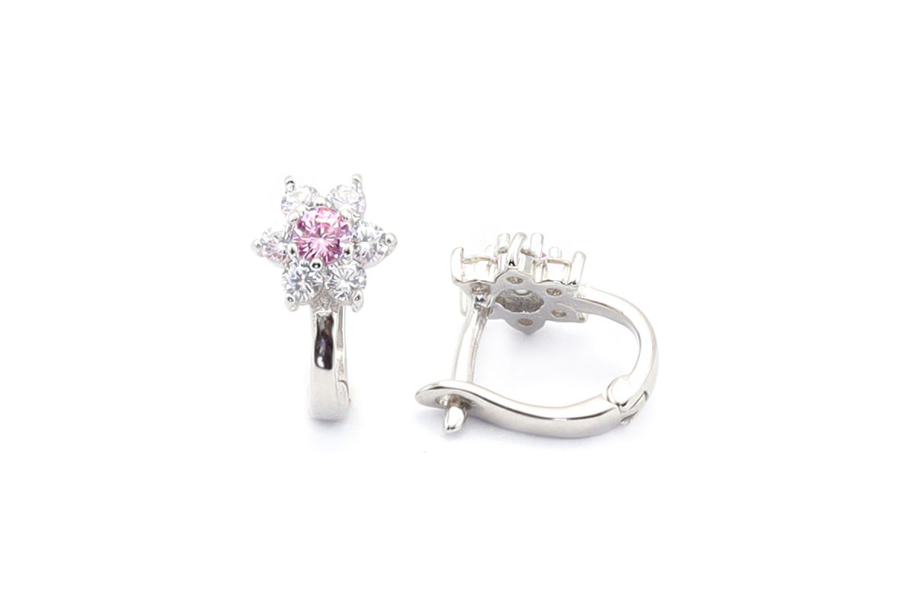Ez az egyik legaranyosabb virágos fülbevalónk! A halványrózsaszín kis cirkónia kövek gyönyörűen szikráznak a rájuk eső fényben, és szépen kiegészítik a fehér kövecskéket ezekben az apró virágokban. A fülbevaló ezüstből készült, biztonságos zárszerkezete miatt pedig már a legapróbb babák is hordhatják.