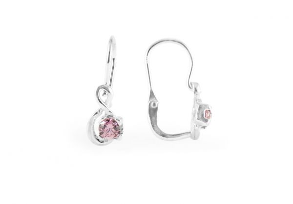Igazán aranyos ez az apró, hurokmintás, mályvaszín cirkónia köves kis ezüst baba fülbevaló. Mosolygós, vidám, kíváncsi kislányoknak ajánljuk! :)